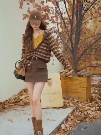 秋季的宝藏穿搭来啦!复古条纹假两件针织衫,长袖藏着俏皮小心思;显瘦工装裙裤,休闲感直接拉满,一起美翻这个秋天!#通勤穿搭如何摆脱土气感#秋季清冷感白月光穿搭#秋日穿搭 #给秋天一点琥珀色看看